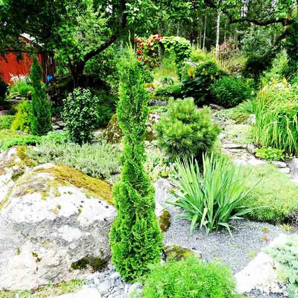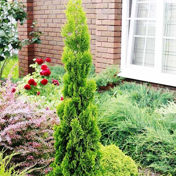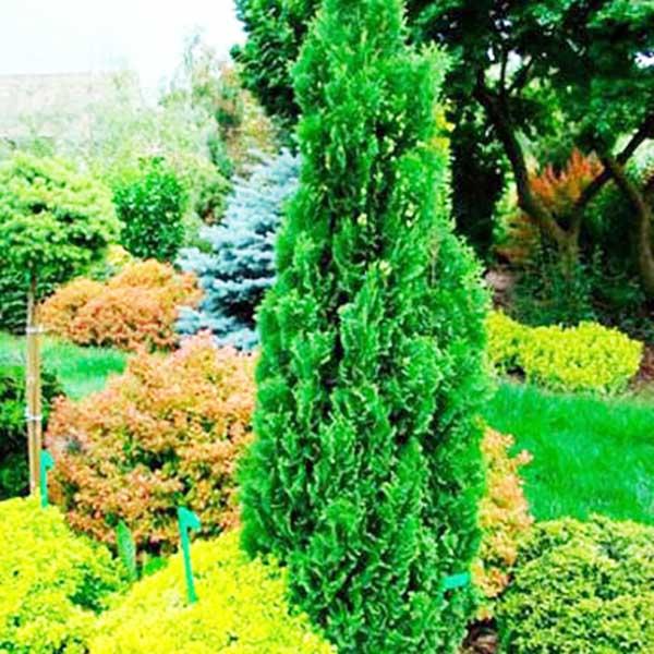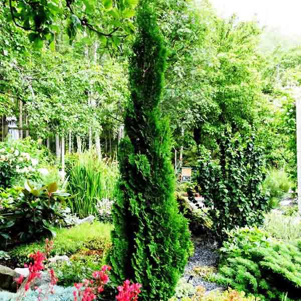 Уход за туей: В первые недели после посадки саженцы туи поливают еженедельно из расчета 10-50 л воды на саженец в зависимости от его размеров. Если вы устроите молодым растениям дождевание, это не только увлажнит почву и напоит корни туи, но и смоет пыль с хвои, устьица листьев раскроются, и растению станет намного легче дышать, соответственно, все физиологические процессы будут протекать быстрее. После полива почву вокруг туи рыхлят, но не глубже, чем на 8-10 см, поскольку корневая система у растения поверхностная.