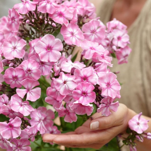 Флокс Hercules (Геркулес) Относится к селекционным формам, выведенным для улучшения декоративных качеств и адаптации к различным климатическим условиям. Высота куста: 65–75 см. Цветы: крупные, диаметром до 5 см, с розовыми лепестками, слегка закрученными, и белёсым центром с глазком цвета фуксии. Соцветия: в форме метелки, высотой 20–30 см.