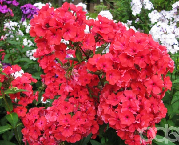 Флокс Маргарита. Яркий малиново-красный с более темным глазком, соцветие округло-коническое, плотное. Куст компактный, прочный.Высота растения 75 см.