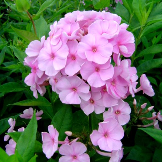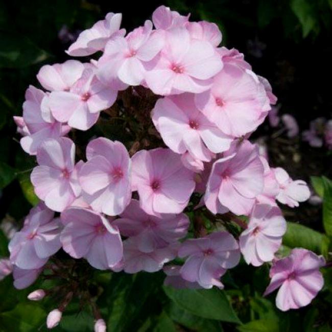 Прекрасный флокс с нежно-розовым пышным цветением! Соцветие овально-коническое, плотное. Цветки ароматные, крупные. Окраска жемчужно – розовая, с маленьким карминным центром. По сравнению с другими сортами зацветает рано, уже в июне.
