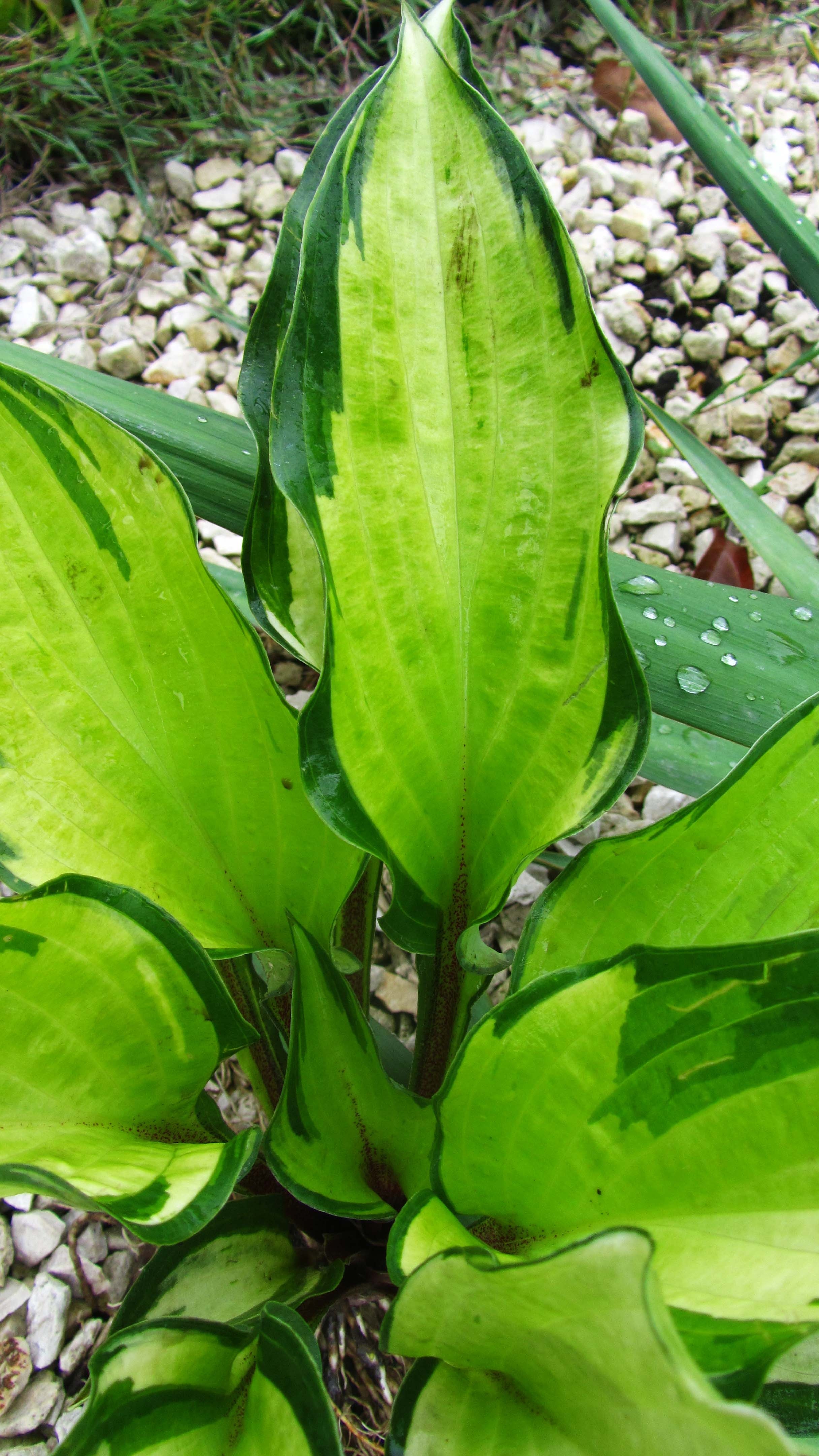 Замечательная и неприхотливая маленькая хоста. Очаровательные листочки сердцевидной формы, в центре окрашены в сливочно-кремовый цвет и окаймлены вначале светло-зелёным, а затем зелёно-голубым. Черешки листьев и цветоносы - с бордовым оттенком.