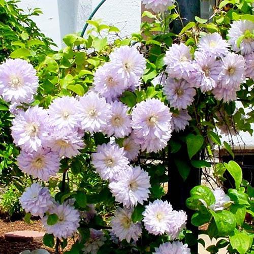 Посадка клематиса: При выборе места для клематиса утичываем тот факт, что растение предпочитает теплое, защищенное от сильных ветров место, а так же тот факт, что цветы любят солнечное место, а корни любят тень. Поэтому рядом с ним хорошо посадить низкорослые цветы или декоративные травы. Например, хосты – отличные компаньоны для лианы. Еще один вариант – мульчирование корней. В качестве мульчи отлично подойдет хвоя, опилки или солома. Важным условием хорошего роста и развития будет хороший дренаж. При посадке на дно ямы можно добавить щебень или битый кирпич, особенно это актуально при близком залегании грунтовых вод.
