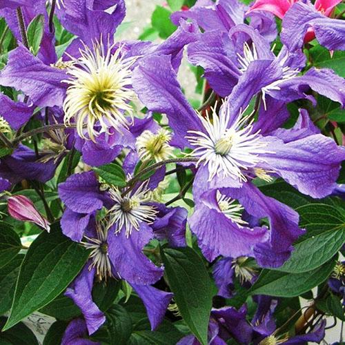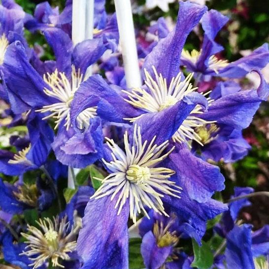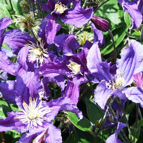 Клематис Blue Pirouette (Блю Пируэт) - кустовидный прямостоячий клематис высотой 1,75 м. Бутоны- фиолетовые. Цветки -темно-синие с фиолетовыми тенями, достаточно крупные для этой группы, 6-8 см, появляются в верхней части побегов. Цветки- с живописно сильно скрученными длинными «гиацинтовидными» лепестками. Лепестки -рельефные, структурированные, с выпуклостями. Цветет обиль непрерывно с июня по сентябрь. Прекрасно подходят к различным многолетникам при создании групп и цветников. Оставленные без опор, или стелются по земле, образовывая красивые ковры или растут вертикально.