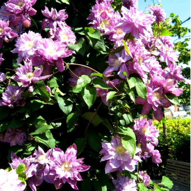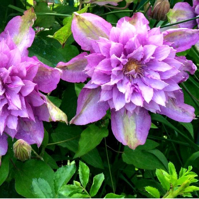 Посадка клематиса: При выборе места для клематиса утичываем тот факт, что растение предпочитает теплое, защищенное от сильных ветров место, а так же тот факт, что цветы любят солнечное место, а корни любят тень. Поэтому рядом с ним хорошо посадить низкорослые цветы или декоративные травы. Например, хосты – отличные компаньоны для лианы. Еще один вариант – мульчирование корней. В качестве мульчи отлично подойдет хвоя, опилки или солома. Важным условием хорошего роста и развития будет хороший дренаж. При посадке на дно ямы можно добавить щебень или битый кирпич, особенно это актуально при близком залегании грунтовых вод.