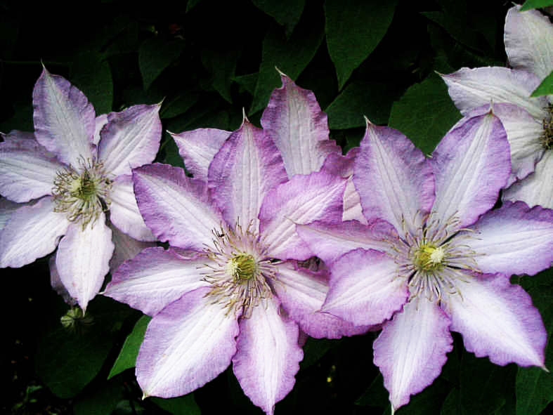 Старый сорт с длительным цветением. Цветы до 15-20 см в диаметре, светло-лавандово-сиреневые с более светлым центром, тычинки густые, кремовые. Цветение очень обильное.