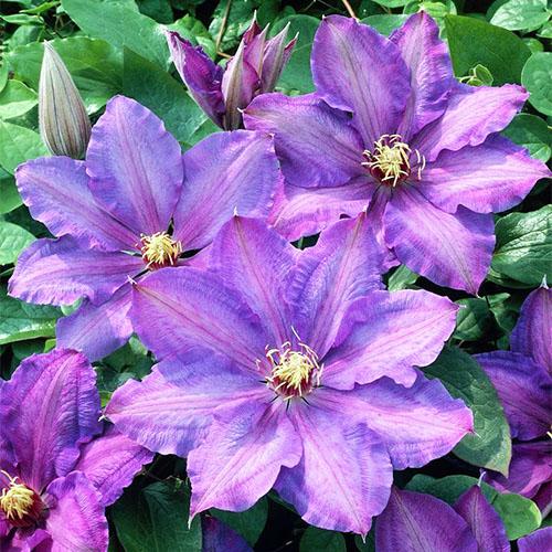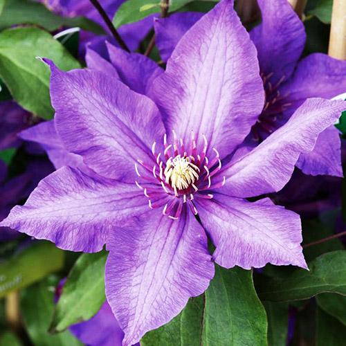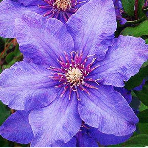 Клематис Richard Pennell (Ричард Пеннел) - красивые сине-фиолетовые цветы с контрастно выделяющимися ярко-желтыми пыльниками будут радовать вас и гостей вашего дома с мая по сентябрь – именно столько длится период цветения этой роскошной декоративной лианы. Крупномер Riсhаrd Реnnеll обычно вырастает до 1,8-2,5 м. При этом диаметр цветков у этого клематиса составляет 14-16 см. Саженцы характеризуются неприхотливостью и простотой в уходе – этот сорт прекрасно растет в открытых грунтах и в контейнерах.
