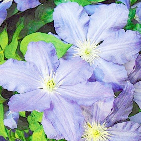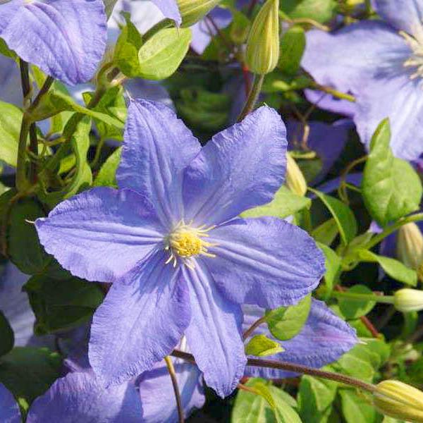 Новейший польский сорт селекции Щепана Марчиньского со светло-фиолетово-голубыми цветками, сложенными из шести овальных, остро законченных чашелистиков со слегка волнистыми краями. Тычинки со светло-желтыми пыльниками на кремовых нитях. Начинает цвести в июне, но наиболее обильно цветет в августе, когда другие сорта уже заканчивают цветение. За опоры цепляется листовыми черешками. Подходит для выращивания у беседок , ограждений, решеток, колышков и других садовых опор. Может карабкаться по натуральным опорам, например, лиственным либо хвойным кустарникам, а также полукустарникам.