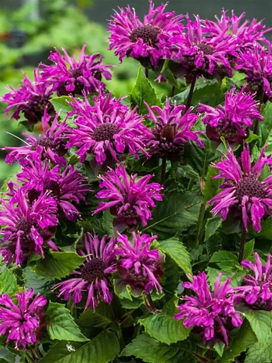 Компактный, крепкий, коренастый куст с прочными побегами, которые никогда не полегают. Растение имеет красивую куполообразную форму, его высота и ширина — 50 см. Цветки редкой окраски: фиолетово-пурпурные. Они крупные, достигают 7 см в диаметре, ароматные. Цветение очень обильное и длительное, происходит с июня по август. Это растение может использоваться не только как декоративное, но и как пряно-вкусовое и лекарственное.