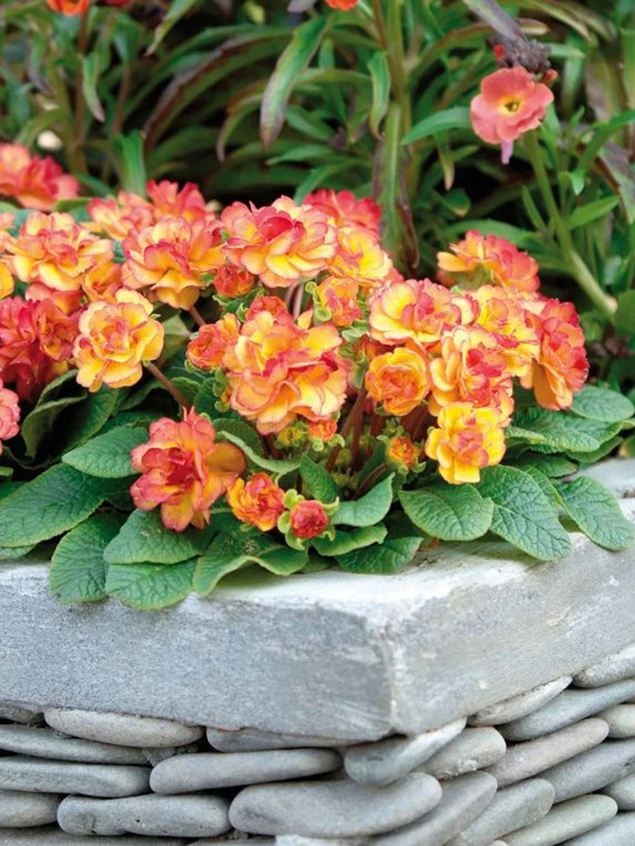 Примулы новой серии Belarina покоряют сердца с первого взгляда. Все сорта этой серии имеют полностью махровые ароматные цветы-розы. Сорт примулы Belarina Nectarine (Беларина Нектарин) обогащает весенний сад цветами, которые раскрываются сначала желтыми, а затем приобретают абрикосово-розовый отттенок, создавая интересный контраст со свежей зеленой листвой.