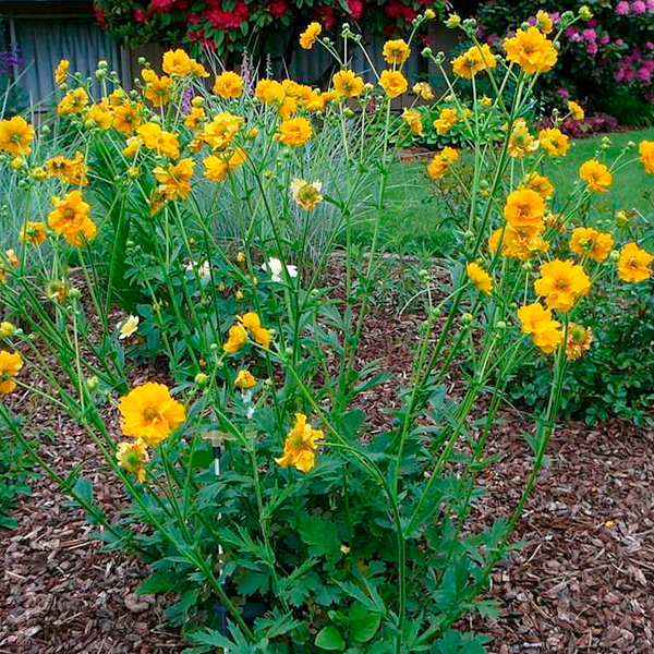 Цветки махровые с ярко-желтыми лепестками. Растение используется для оформления рабаток, передних планов альпийских горок, рокариев, в групповой посадке на лужайке. Отлично декорирует берега водоемов, в том числе небольших искусственных.