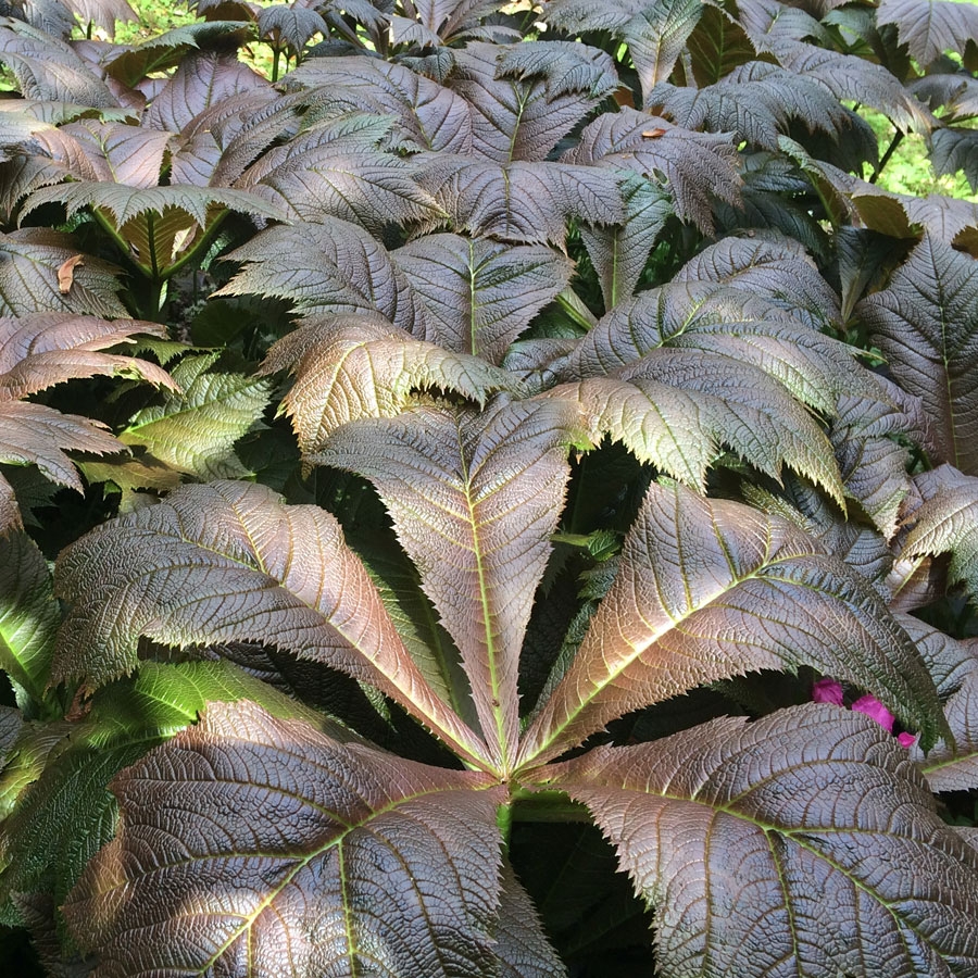 Роджерсия Braunlaub (Браунлауб) - интересное многолетнее растение. Цветет душистыми кремовыми метелками. При распускании листья блестящие коричнево-бронзовые, затем зеленеют. Осенью листья приобретают красные оттенки. Любит тень или полутень. Предпочитает роджерсия Braunlaub (Браунлауб) питательную, рыхлую и влажную почву. Растение устойчиво к болезням и вредителям. Можно использовать роджерсию Braunlaub (Браунлауб) как в одиночных, так и групповых посадках. Только в обоих случаях для растения нужно сразу же отвести побольше места, ведь оно сильно разрастается.