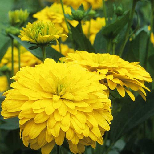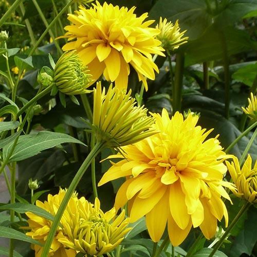 Рудбекия многолетняя – один из самых ярких представителей семейства астровых. Броские, красивые цветы рудбекии удачно дополнят ансамбль любого цветника. Распустившиеся цветы будут вас радовать практически всё лето, не теряя своей декоративности. Нуждается в минимальном уходе. Характеризуется впечатляюще быстрым ростом до 2 м. Характеризуется обильным цветением. Из-за длинных цветоносов рудбекия востребована при составлении букетов.