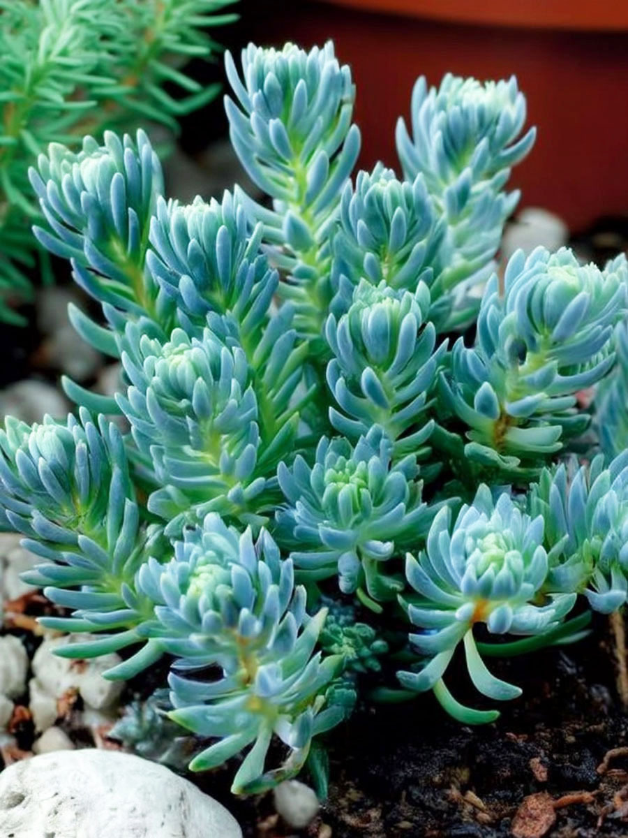 Посадка седума: Сделайте в почве лунки на расстоянии 20 см друг от друга и высадите в них рассаду очитка. После посадки проведите обильный полив сеянцев. Зацветают очитки из семян на второй или третий год.