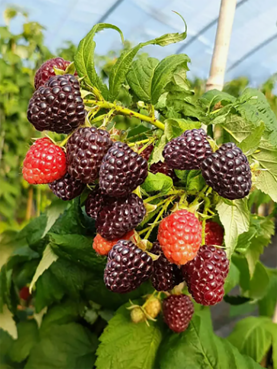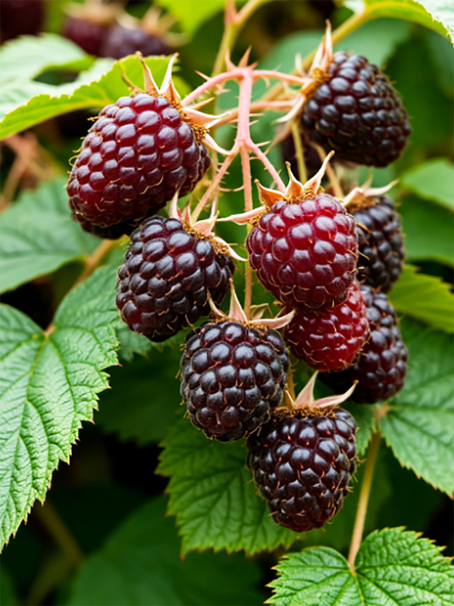 Ягоды у Хебан крупные, с бархатистой поверхностью и насыщенной окраской, сочные и ароматные, с характерным кисло-сладким послевкусием, которое кажется особенно ярким после тепла летних дней. Хебан славится своей ремонтантностью: после основного сбора в начале лета она продолжает обновлять побеги и образует новые плодоносящие соцветия, позволяя получать второй и третий волны урожая в зависимости от климата и ухода. Это делает куст устойчивым к климатическим колебаниям и обеспечивает стабильное плодоношение на протяжении всего лета и начала осени. Побеги прочные, вертикальные, высотой до 1,6–1,8 м, с крупными шипами, которые не препятствуют сбору урожая.