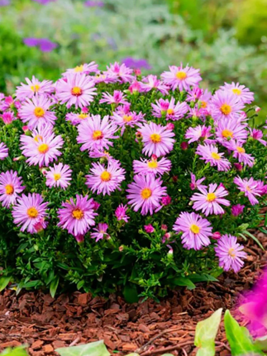 Подготовка к зиме: Астра Маржори не требует укрытия на зиму благодаря высокой морозостойкости. Однако в регионах с суровыми зимами астры могут потребоваться дополнительные меры. В качестве укрытия можно использовать: лапник — эффективен в защите от морозов и сильного ветра, создаёт надёжный барьер для холода, агроволокно — лёгкое и не препятствует циркуляции воздуха, что предотвращает выпревание растений.