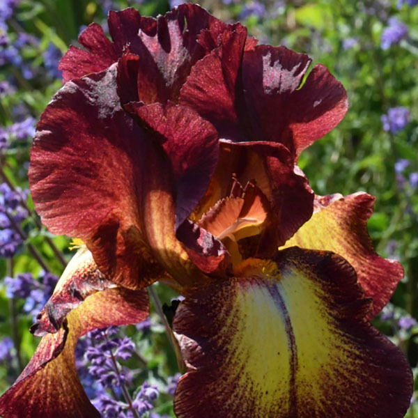 Стандарты красно-бордовые, фолы с большим жёлтым центром и широкой красно-бордовой каймой. Цветение обильное. Листья плоские, с восковым налётом. Аромат: цветущего апельсина. Не требует укрытия на зиму.