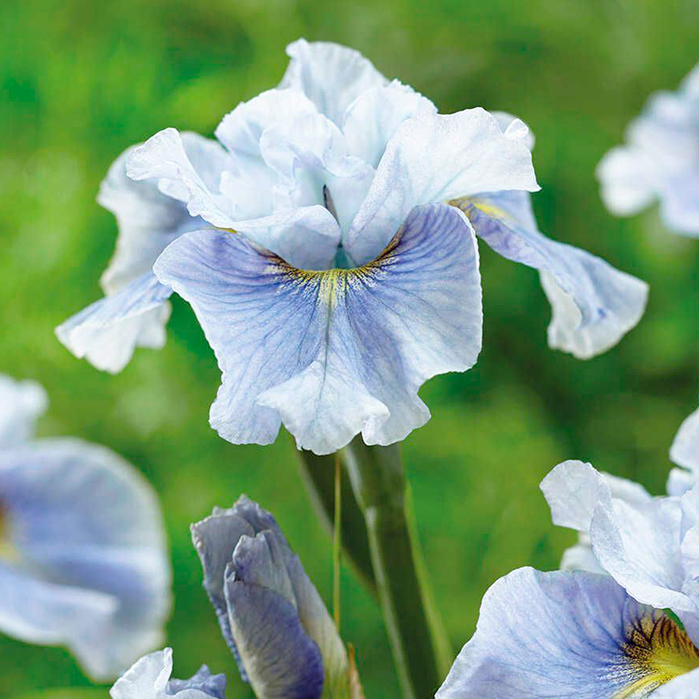 Стильный сорт с небольшими светло-голубыми стандартами, которые широким красочным водопадам занимают центральное место. Мягкий синий цвет этой радужки уникален и красиво подчеркивает голубые фолсы с желтым сигналом.