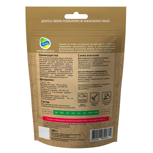 Полностью натуральное органическое гранулированное удобрение на основе овечьей шерсти.