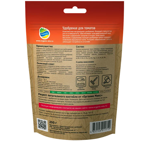 Комплексное 100% органическое удобрение для выращивания крупных сочных томатов.