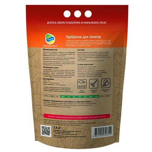 Комплексное 100% органическое удобрение для выращивания крупных сочных томатов.