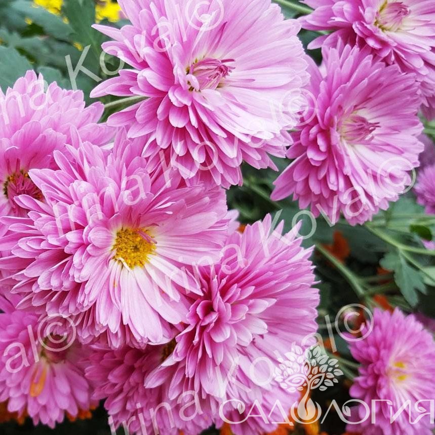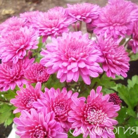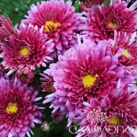 Хризантема корейская Фантазия - многолетник высотой до 60 см, шаровидный. Диаметр цветка до 7 см, сиреневые, полумахровые. Начало цветения раннее — август. Зимующая в открытом грунте.
