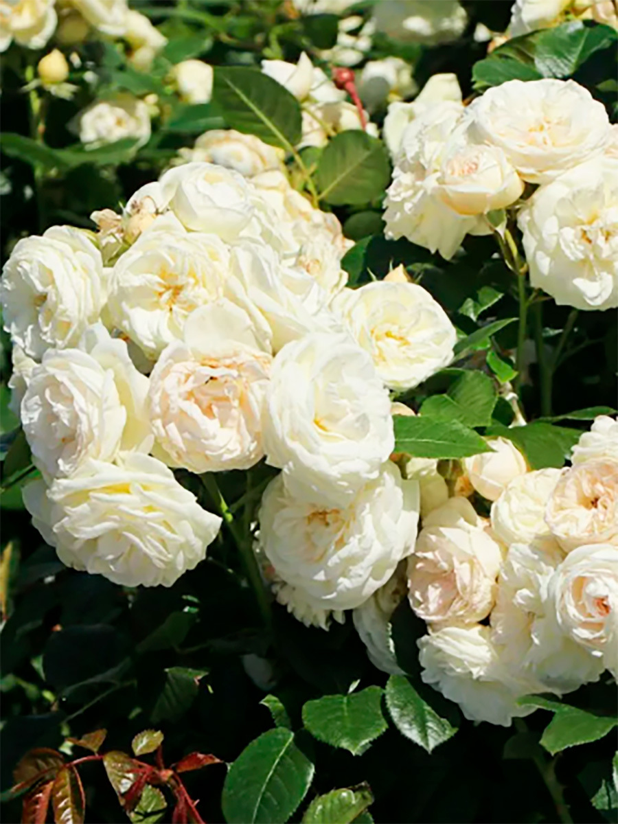 Размножение: Розы размножают делением куста корнесобственных растений, черенкованием, а также отводками. При делении куста весной, после оттаивания грунта, растения выкапывают и разделяют так, чтобы на каждой части сохранилось немного корней и несколько побегов. Затем для лучшей приживаемости их укорачивают.